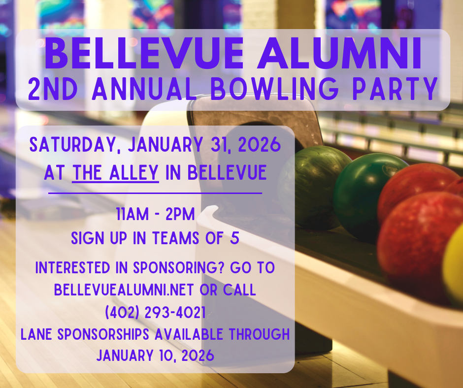 The 2nd Annual Bellevue Alumni Bowling Party is set for Saturday, January 31, 2026, from 11am to 2pm at The Alley in Bellevue! The cost is $125 for your team of up to 5 bowlers (You can have six on your team, but two people have to share a spot). The price includes shoes (if needed) and bowling for 3 games or up to 3 hours!
